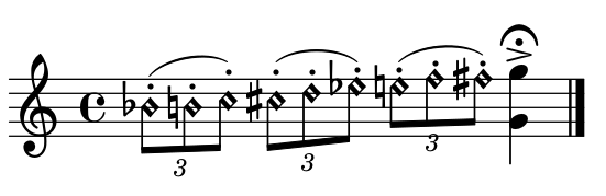 inst.play_note(pitch, 1, 1 / 3, [harmonic, "staccato", StopSlur()])